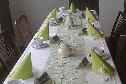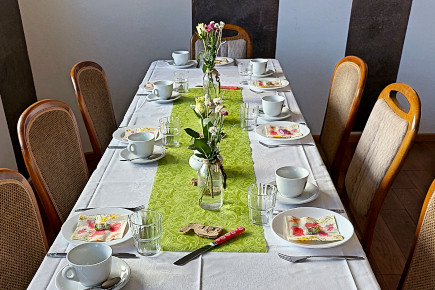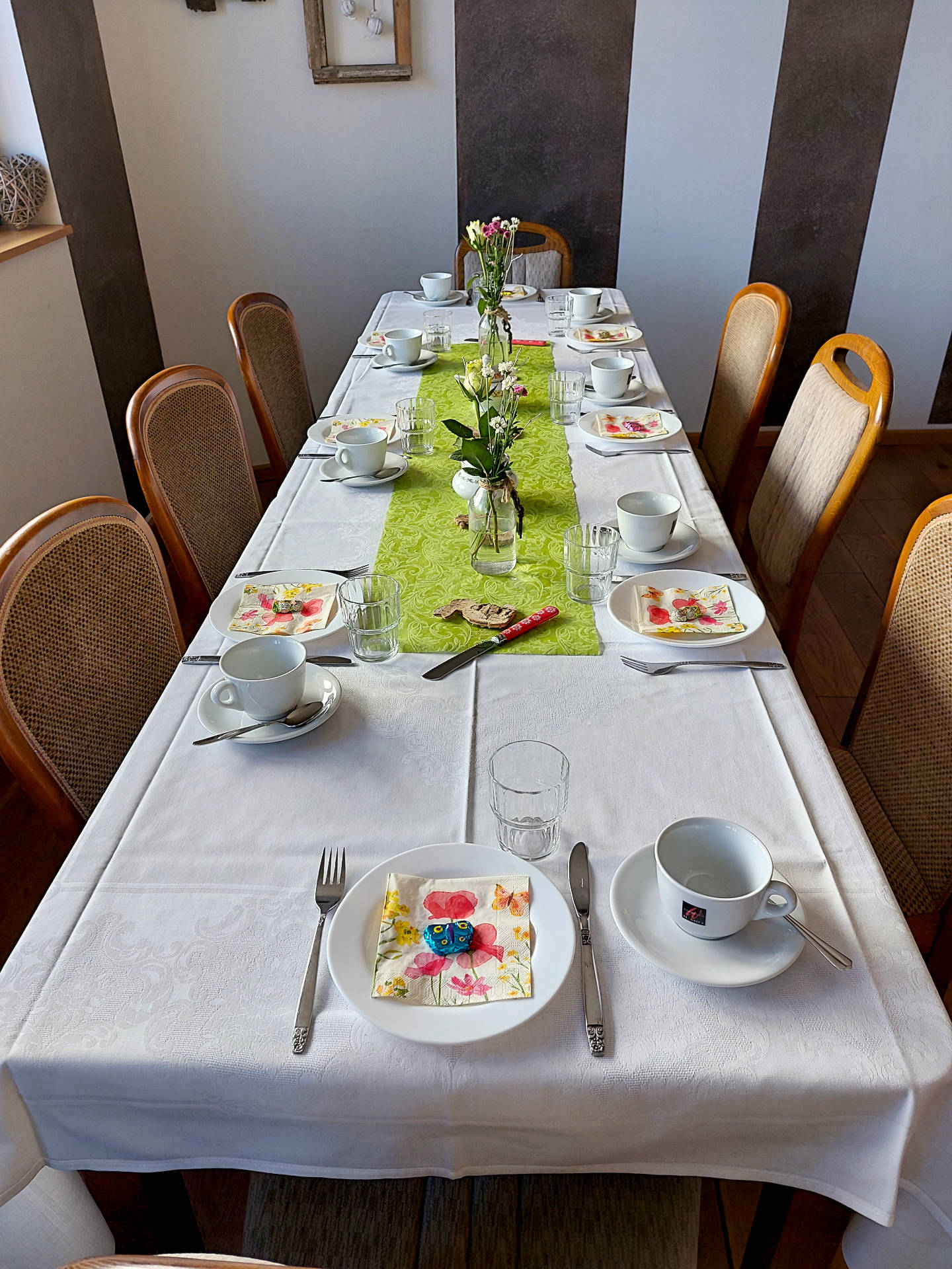 Weit über die Dorfgrenze hinaus sind unser Frühstück auf dem Bauernhof und der selbstgebackene Kuchen bekannt Besondere Anlässe wie Geburtstage, Trauerkaffee oder Ähnliches können nach Absprache jederzeit bei uns gefeiert werden.
