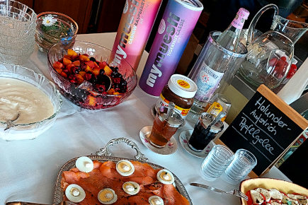 Ein besonderes Highlight ist unser Bio-Holundersaft, den wir aus den Holunderbeeren vom Gut Winterbüren aus Rothwesten erzeugen.