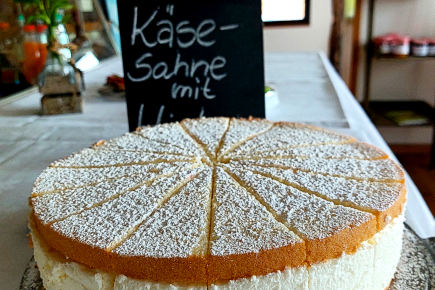 Unser Hofcafé hat sich zu einem beliebten Treffpunkt für Jung und Alt etabliert und lädt zum Verweilen, Schnuddeln und Stärken ein. Besonders bei Wanderungen, Motorradfahrten und Fahrradtouren gelten wir als ideale Zwischenstation. In den beiden gemütlichen Bereichen unseres Cafés finden ca. 35 Personen Platz. Darüber hinaus stehen in den Sommermonaten noch zahlreiche Plätze in unserem Biergarten zur Verfügung.